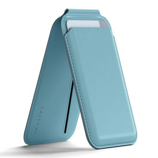 Магнитный кошелек-подставка Satechi Magnetic Wallet Stand MagSafe (AP-MWSB) Light Blue идеально сочетает в себе стиль, функциональность и устойчивость. Это мощный дополнительный аксессуар и идеальный компаньон для ваших повседневных нужд. Разработанный с использованием совместимой с MagSafe технологии, этот элегантный кошелек из веганской кожи легко и надежно крепится к вашему iPhone с помощью защелкивающегося соединения, поэтому вы можете удобно носить с собой карты, удостоверение личности или даже наличные, куда бы вы ни пошли. Универсальный магнитный кошелек также разработан как прочная и надежная подставка для вашего iPhone, предоставляя вам возможность без помощи рук просматривать веб-страницы, транслировать видео или совершать звонки FaceTime как в портретном, так и в ландшафтном режимах.