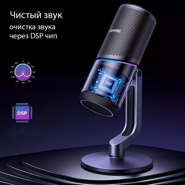 Микрофон настольный Ugreen CM769 с RGB подсветкой (35629) серый обеспечивает высококачественный звук с частотой дискретизации до 96 кГц/24 бит, а также использует передовой алгоритм шумоподавления DSP и кардиоидную направленность для точного захвата голоса. Это делает его отличным выбором для записи, стриминга и общения.