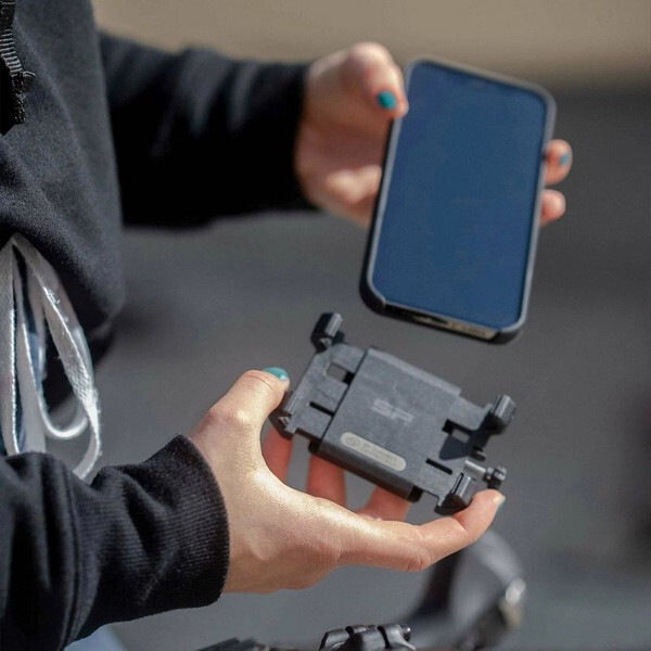 Широкая площадка и резиновые уплотнители гасят излишнюю вибрацию, негативно влияющую на работоспособность смартфона. На задней стенке есть специальное крепление-замок MicroRail. Оно совместимо со всеми видами креплений SP Connect.