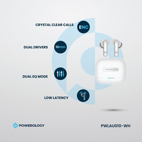 Наушники Powerology Hybrid ANC + ENC True Wireless 6 Mic (PWLAU010-WH) предоставляют пользователям безусловно чистый звук в сочетании с передовыми технологиями. Вы можете играть и слушать звук до 6 часов благодаря емкости аккумулятора 350 мАч при громкости 60%, гарантируя, что вы можете наслаждаться любимой музыкой или принимать звонки в течение дня. Кроме того, время ожидания составляет впечатляющие 50 часов, поэтому вам не придется беспокоиться о быстрой зарядке. Время перезарядки составляет около 1,5 часов с технологией быстрой зарядки для зарядного кейса и 1 час для наушников с портом зарядки Type-C. Испытывать кристально чистые звонки, поддерживаемые ENC (Environmental Noise Cancellation), было бы приятно и полезно. Powerology 6 Mic Hybrid ANC + ENC True Wireless Buds — это идеальный выбор для игр и просмотра видео благодаря функции низкой задержки в 50 мс и Bluetooth V5.3 для стабильного соединения. Кроме того, водонепроницаемость IPX4 делает его отличным выбором для использования на открытом воздухе и тренировок.