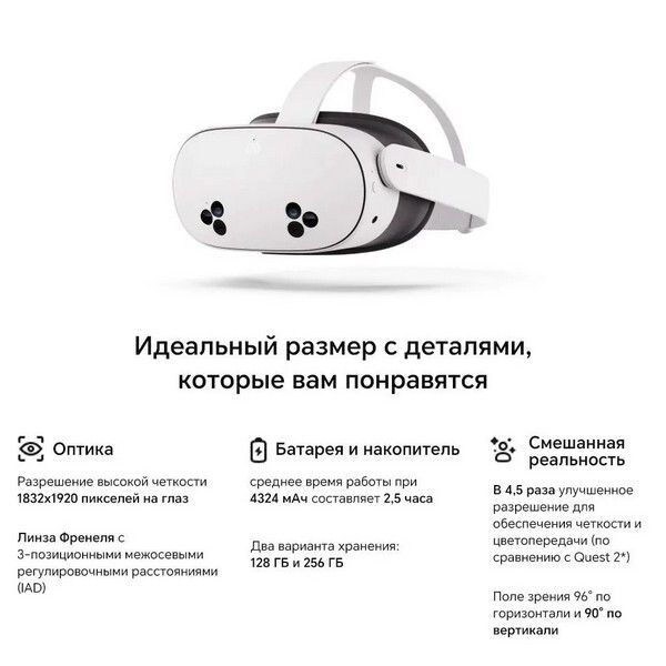 Одной из ключевых характеристик Quest 3S стало расширенный промежуток в области между линзами и глазами, что обеспечивает возможность использовать устройство людям, пользующимися рецептурными очками. Линзы Френеля с регулировкой межзрачкового расстояния позволяют добиться оптимального качества изображения для каждого пользователя. Контроллеры Touch Plus, благодаря эргономичному дизайну, обеспечивают комфортное управление, а интеграция оптических датчиков и камер предоставляет еще больше возможностей для точного отслеживания движений в пространстве.