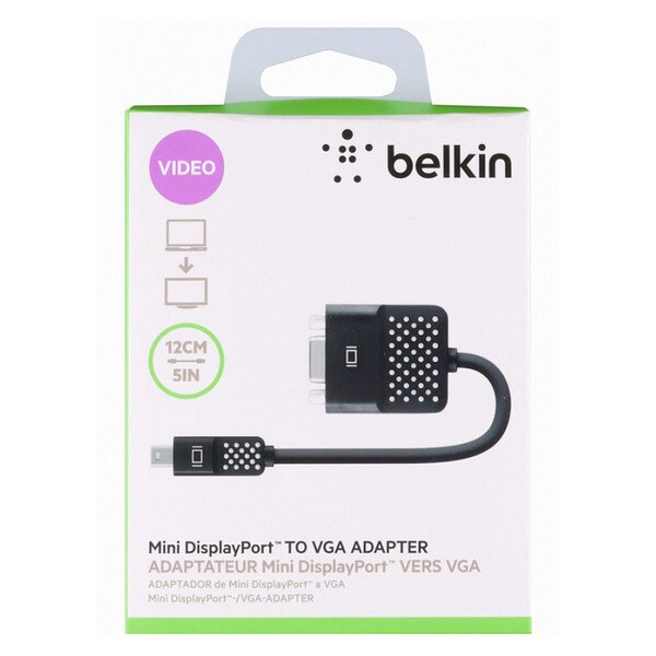 Переходник Belkin Mini DisplayPort to VGA Adapter (F2CD028bt) позволяет подключать стандартный аналоговый монитор, проектор или жидкокристаллический (LCD) монитор, использующий порт VGA, к ноутбукам MacBook, MacBook Pro или MacBook Air, у которых есть разъем Mini DisplayPort. Благодаря данному переходнику вы можете использовать внешний монитор в качестве основного рабочего пространства, для расширения «рабочего стола» или в режиме видеоповтора, чтобы видеть всё, что видят ваши зрители.