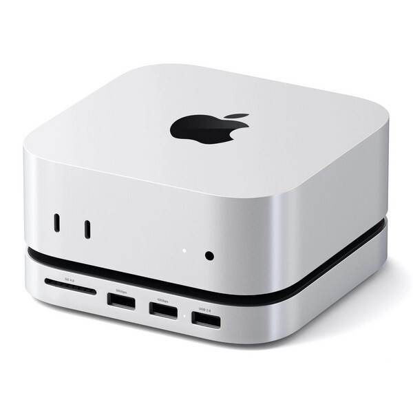 Подставка-концентратор Satechi Mac Mini M4 Stand & Hub с отсеком для SSD (ST-GNMMES) серебристый - расширьте хранилище и подключение вашего Apple Mac Mini M4 или M4 Pro с помощью Stand & Hub с корпусом SSD M.2 от Satechi, который подключается к вашей хост-системе с помощью встроенного кабеля USB-C 3.2 Gen 2,15". После подключения у вас будет доступ к двум портам USB-A 3.2 Gen 2, одному порту USB-A 2.0 и устройству устройства чтения карт UHS-II SD/SDHC/SDXC. Также представлен слот NVMe SSD, который поддерживает форм-факторы M.2 2230, 2242, 2260 и 2280, а также нижние вентиляционные отверстия и утопленный верх для обеспечения эффективного воздушного потока.