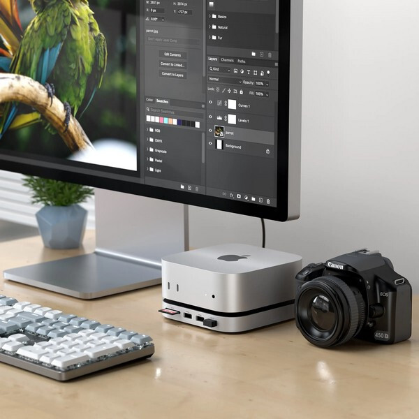 Изготовленный из прочного алюминия, он идеально сочетается с новым Mac Mini, обеспечивает совместимость с USB-A, эффективное рассеивание тепла и встроенное управление кабелями.