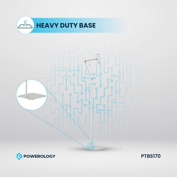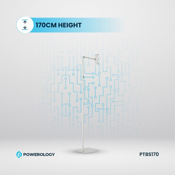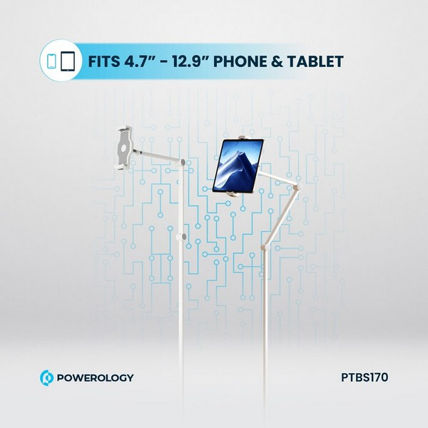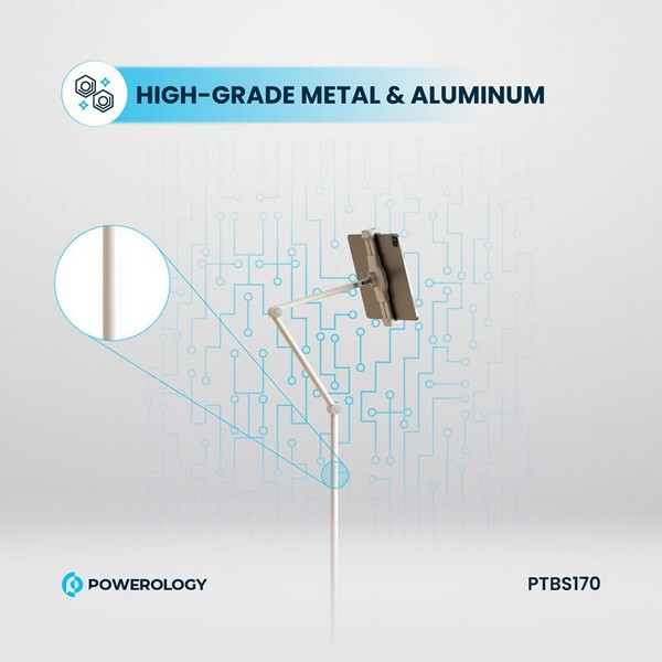 Подставка Powerology для планшета (PTBS170WH) - это универсальное и прочное решение для хранения телефона или планшета. Изготовленная из высококачественного металла и алюминия, эта подставка имеет прочное основание и регулируемую высоту от 110 см до 170 см. Вращающаяся на 360° головка и телескопическая конструкция обеспечивают несколько углов обзора, что делает ее идеальной для видеозвонков, просмотра фильмов или чтения. Совместимая с устройствами от 4,7" до 12,9" и способная выдерживать нагрузку до 2 кг, эта подставка станет практичным дополнением к любому дому или офису.