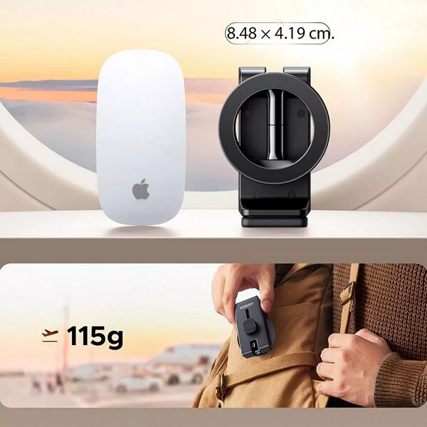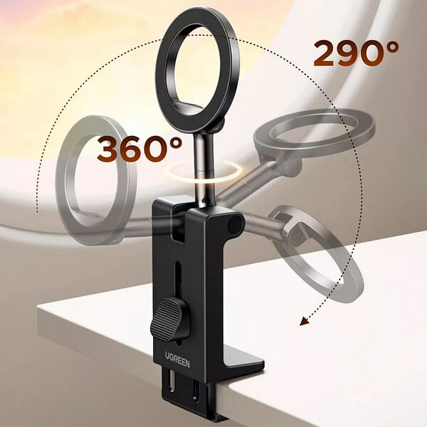 Держатель оснащен функцией поворота на 360 градусов, что позволяет легко переключаться между горизонтальным и вертикальным режимами, обеспечивая оптимальные углы обзора для комфортного просмотра контента. Компактный и легкий, он идеально подходит для путешествий, легко крепится на столы, ручки чемоданов и даже может использоваться в автомобиле или на рабочем столе.