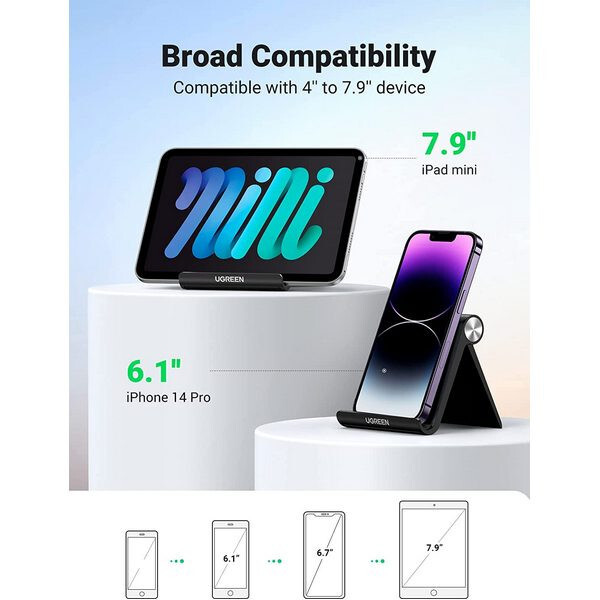Подставка Ugreen LP106 Adjustable Portable Stand Multi-Angle (30285) белый может обеспечить безопасное и надежное крепление для ваших смартфонов и небольших планшетов в портретном или ландшафтном режиме. Теперь пришло время дать вашим рукам отдохнуть, насладиться просмотром видео, чтением, общением по телефону или просмотром веб-страниц с помощью этой регулируемой подставки для телефона. Независимо от того, в офисе, на кухне, в спальне или на столе, эта подставка для телефона станет идеальным компаньоном для ваших смартфонов.