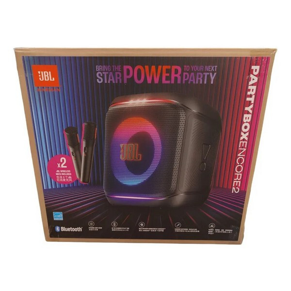 Портативная акустика JBL PartyBox Encore 2 с 2 микрофонами черный - задайте ритм своей вечеринке вместе с JBL PartyBox Encore 2. Эта портативная колонка создана для того, чтобы быть душой любой тусовки — мощный звук JBL Pro Sound, насыщенные басы и чистые высокие частоты подарят невероятные эмоции, независимо от того, играют ли бодрые танцевальные треки или романтичные баллады. Захватывающее световое шоу синхронизируется с музыкой и усиливает эффект полного погружения. Хотите взять микрофон в руки? Беспроводной цифровой микрофон включён в комплект — устройте караоке-батл или объявляйте тосты, регулируя эхо, басы и высокие частоты для идеального звучания. Колонка легко справляется с вечеринками на природе и в помещении, благодаря удобной ручке для переноски и брызгозащите IPX4. А если хотите устроить по-настоящему громкую тусовку — объединяйте две колонки или подключайте их к другим устройствам с JBL Auracast™. До 15 часов автономной работы, возможность смены аккумулятора и управление через приложение JBL PartyBox делают её незаменимой на любой вечеринке.