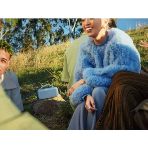 Компактный дизайн с удобной ручкой, выполненной из уникальной мягкой веревки, позволяет легко носить колонку с собой на любую вечеринку.