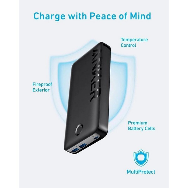 Портативный аккумулятор Anker 335 Power Bank PowerCore 20000mAh (A1288H11) черный - благодаря емкости 20 000 мАч ваши устройства будут работать в течение нескольких дней, пока вы путешествуете по работе или на отдыхе. Получите максимально быструю зарядку мощностью до 20 Вт с помощью 3 портов USB. Заряжайте свои повседневные предметы, такие как телефон, наушники и Apple Watch, одновременно. Сочетание 10 функций безопасности, которые работают вместе, чтобы обеспечить максимальную защиту ваших устройств, зарядных устройств и, самое главное, вас самих.