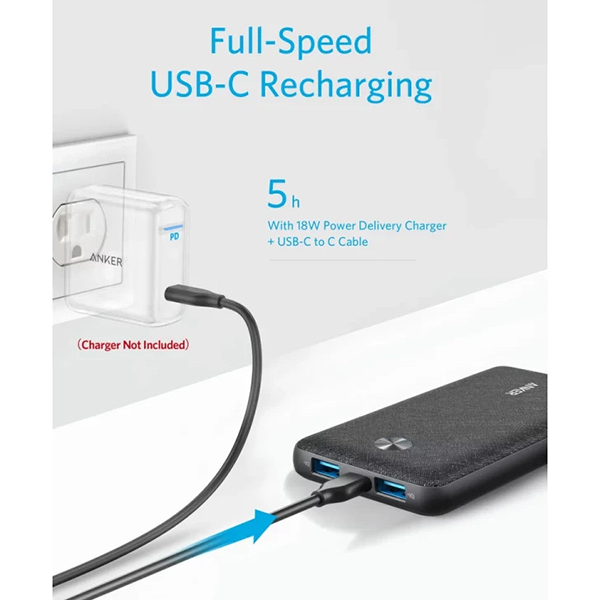 Корпус Anker Power Core III Sense изготовлен из прочного пластика с оригинальной текстильной отделкой.