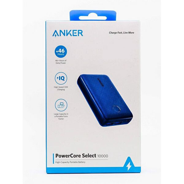 Портативный аккумулятор Anker PowerCore Select 10000 мАч синий (A1223H31) - портативная батарея большой емкости. От Anker, ведущего американского бренда зарядных устройств. Быстрая и безопасная зарядка с помощью передовой технологии. Более 30 миллионов довольных пользователей, и их количество продолжает расти. 2 порта USB-A с технологией высокоскоростной зарядки Anker PowerIQ позволяют заряжать два устройства одновременно. Компактный и портативный PowerPort Select 10000 удобно помещается на ладони или в кармане, идеально подходит для работы или путешествий.