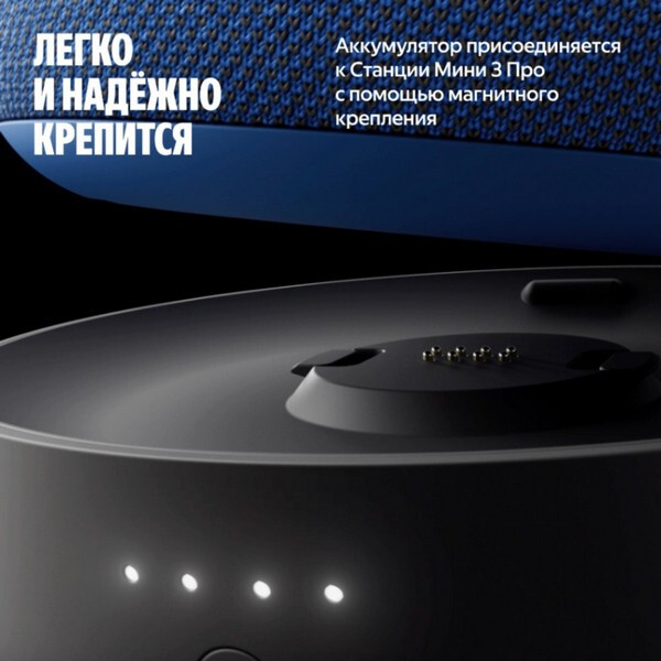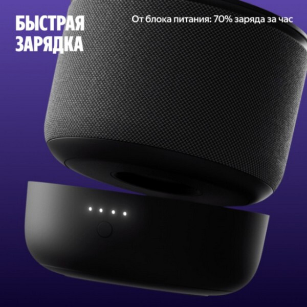 Портативный аккумулятор для Станции Мини 3 Про, черный позволяет переносить умную колонку из комнаты в комнату и брать её с собой куда угодно, чтобы не расставаться с Алисой и любимой музыкой.