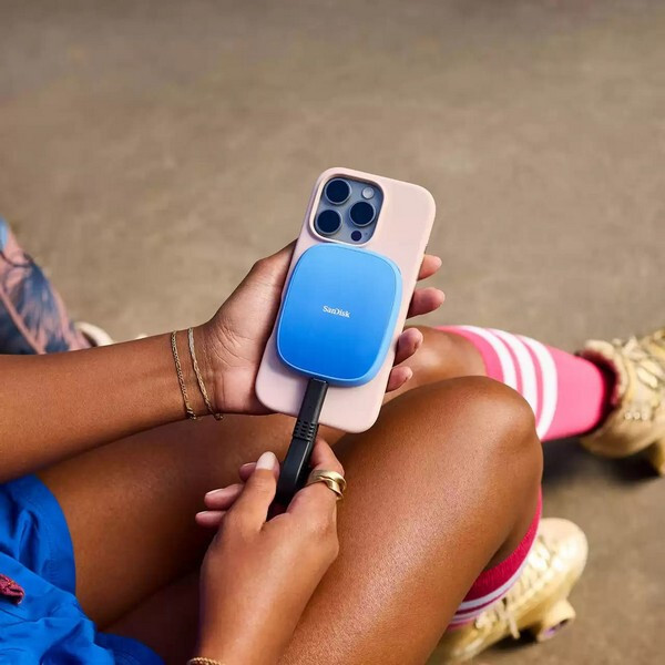 Портативный твердотельный накопитель для телефона SanDisk Creator Phone SSD (2 ТБ) предназначен для создания контента на ходу и легко подключается к смартфону, совместимому с MagSafe. Снимайте потрясающее видео с разрешением 4K и скоростью 60 кадров в секунду в формате Apple ProRes и сохраняйте контент прямо на диск, чтобы немедленно приступить к монтажу. Будьте спокойны, куда бы вдохновение ни привело вас: этот надежный накопитель имеет прочное силиконовое покрытие корпуса, защищен от удара при падении с высоты до трех метров, а уровень его пылевлагозащиты соответствует стандарту IP65. А чтобы процесс монтажа стал проще, воспользуйтесь месяцем бесплатной подписки на Adobe Creative Cloud. Вдохновение может посетить вас когда угодно, но с SanDisk все необходимые инструменты для творчества будут у вас всегда под рукой.