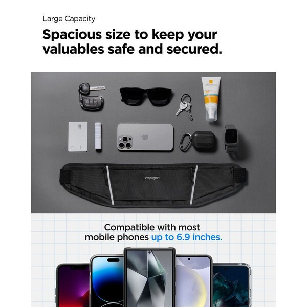 Поясная сумка Spigen Dynamic Shield Waist Bag A710 (AMP04618) Black - функциональная сумка, идеально сочетающая в себе комфорт и практичность. Аксессуар изготовлен из мягкого нейлона – он очень легок и удобен для ежедневного пользования. Сумка обладает водонепроницаемыми свойствами, что гарантирует защиту ее содержимого даже в дождливые дни. Кроме того, изделие легко стирается и быстро сохнет, поэтому его очень просто поддерживать в чистоте.
