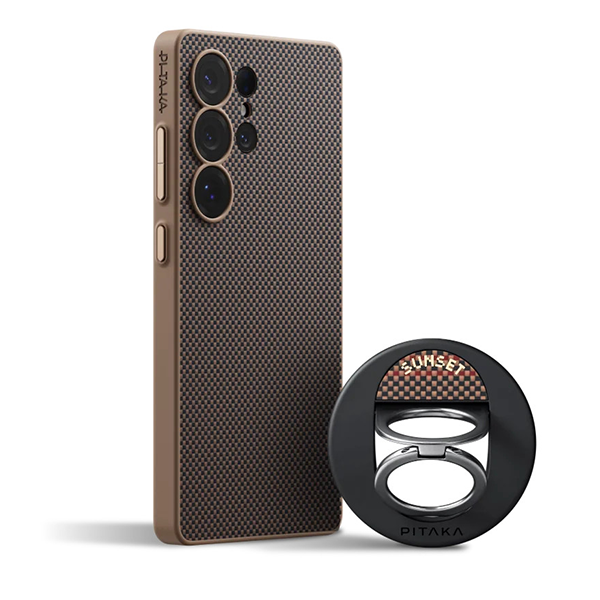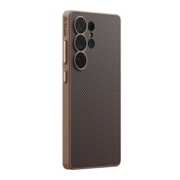 Противоударный чехол Pitaka PIN Button Case MagSafe для Samsung Galaxy S25 Ultra Black/Gold Plain (PBS2502U) - универсальная защитная конструкция. Три кнопки PinButton можно настроить для быстрого запуска наиболее часто используемых функций, таких как камера, заметки, диктофон и интеллектуальные приложения, такие как AI и SmartThings, или использовать с системой ONE UI для разделения экрана или легкого переключения между режимами. Арамидное волокно аэрокосмического класса, в 5 раз прочнее стали. Отличительные тканые текстуры из арамидного волокна дарят приятные тактильные ощущения и сдержанную изысканность, идеально дополняя различные случаи жизни. Роскошная подкладка из кожи наппа смягчает удары на задней панели телефона. Гибкий ТПУ гарантирует, что ваше устройство выдержит самые сложные испытания.