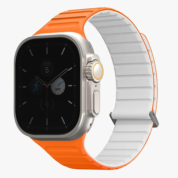Ремень силиконовый Uniq REVIX EVO для Apple Watch 49/45/44/42MM оранжевый/белый (AMBER ORANGE/WHITE) 49MM-REVEAORGWHT