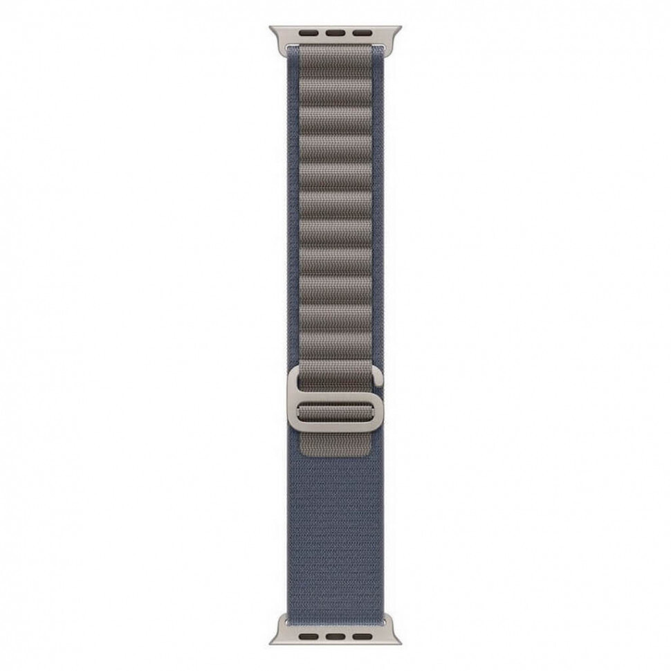 Ремешок Apple Trail Loop для Apple Watch 49 мм размер S Blue Alpine (MT5J3ZM/A) изготовлен из двух слоев ткани, сплетенных в одно непрерывное полотно без сшивания. Высокопрочные нити укрепляют верхние петли, а устойчивый к коррозии титановый G-образный крючок легко вставляется в петли для надежной фиксации.