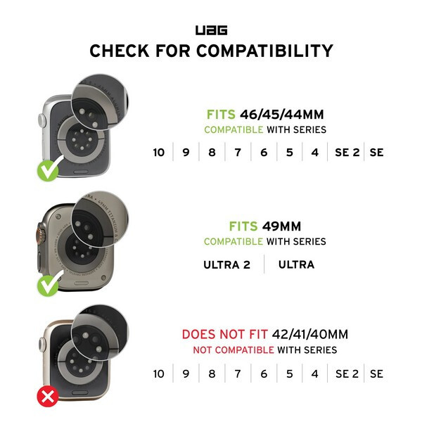 Совместимость: Apple Watch Series 4-6: SE 44 мм, Series 7-9 45 мм, Series 10 46 мм, Series Ultra 1-2 49 мм.