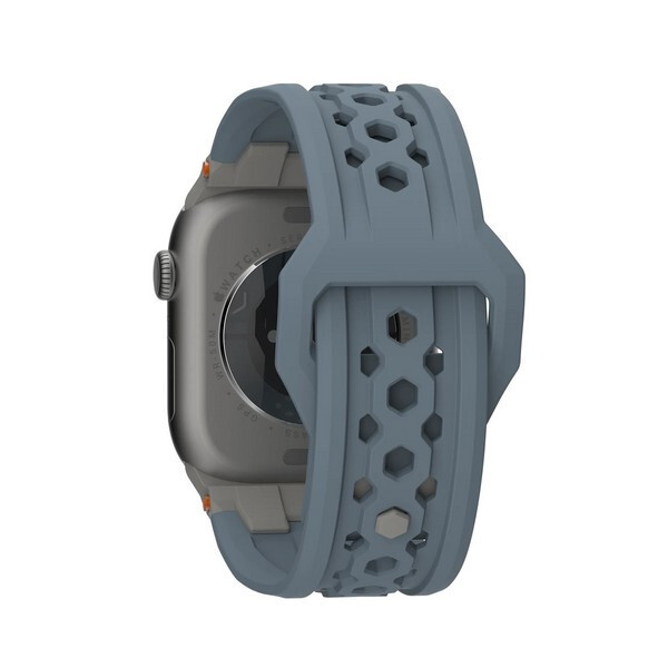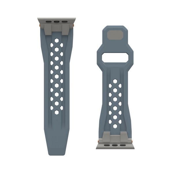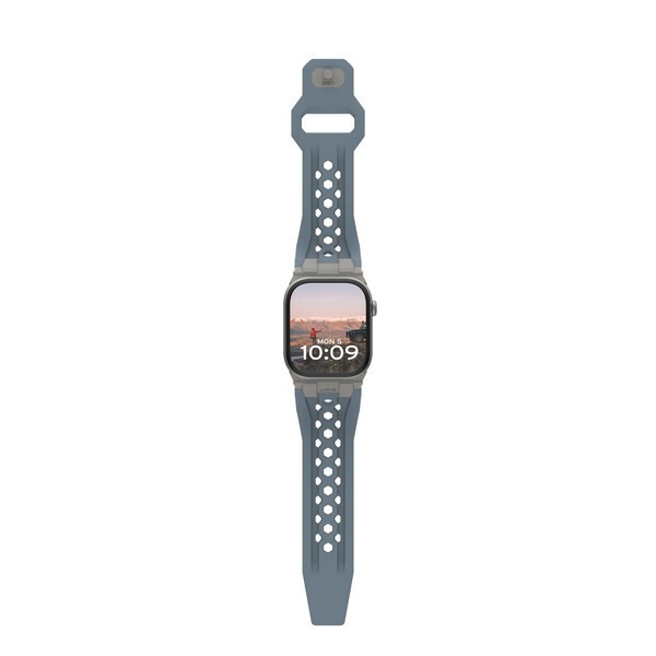Ремешок каучуковый UAG Monarch для Apple Watch 49/45/44/42 мм голубой/титановый (Cloud Blue/Titanium) (194158114136) - ремешок, созданный для тех, кто ценит долговечность без ущерба стилю, создан, чтобы выдерживать непогоду и при этом улучшать свой внешний вид. Изготовленный из высококачественного фторэластомера FKM, Monarch обеспечивает превосходную производительность в любых условиях. Ремешок выдерживает экстремальные температуры, химикаты, ультрафиолетовые лучи, воду и пыль, что делает его идеальным спутником для приключений на открытом воздухе. Специальная фурнитура из нержавеющей стали титанового цвета добавляет нотку изысканности, гарантируя долговечность, на которую вы можете рассчитывать. Его система застежки-булавки надежно и гладко держит ваш ремешок, предотвращая зацепы и аккуратно убирая излишки ремешка для комфорта в течение всего дня. Перфорированный дизайн улучшает циркуляцию воздуха, помогая вам оставаться в прохладе, а смелые акцентные цвета добавляют современный вид.