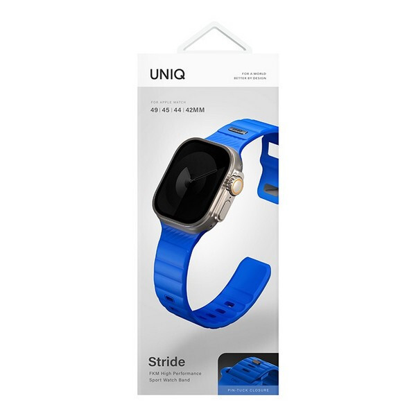Ремешок каучуковый Uniq Stride FKM Rubber для Apple Watch 42/44/45/49 мм синий (Cobalt Blue) UNIQ-49MM-STRICBLU - мягкий аксессуар из фторэластомерного каучука, обладает высокой прочностью, комфортно сидит и прекрасно смотрится на руке. Cтильный водонепроницаемый ремешок гарантирует надежность даже при самых интенсивных занятиях спортом. Фиксируется на руке с помощью удобной pастежки-булавки, обеспечивает надежную посадку, при этом конец ремешка аккуратно спрятан, чтобы не зацепиться.