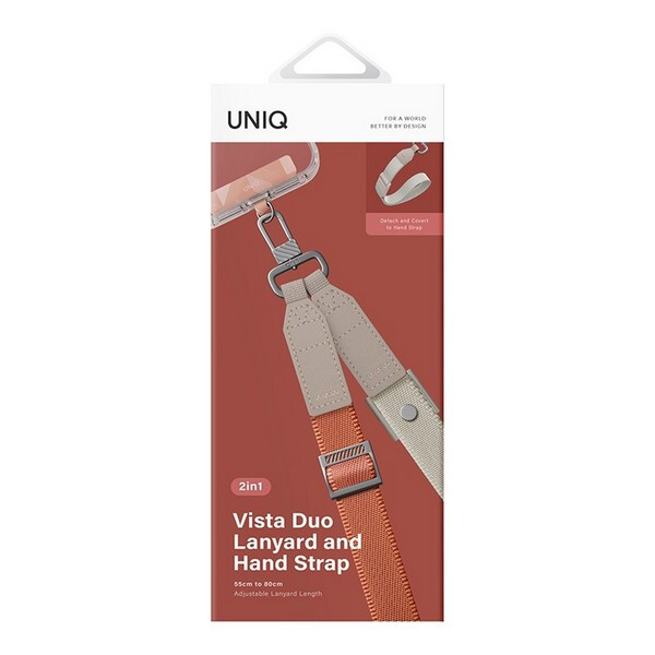 Ремешок на шею/руку Uniq Vista Duo 2-in-1 Lanyard and Handstrap (VISTADUO2IN1-TERBEG) Terracotta/Beige - регулируемый ремешок 2-в-1, который поставляется в яркой цветовой гамме, разработан с надежной системой магнитной пряжки, легко отсоединяется, чтобы удобно превратиться в ремешок для руки, так что вы можете носить свои необходимые вещи так, как вам удобно. Включает карту-ремешок для универсальной совместимости со всеми чехлами для телефонов.