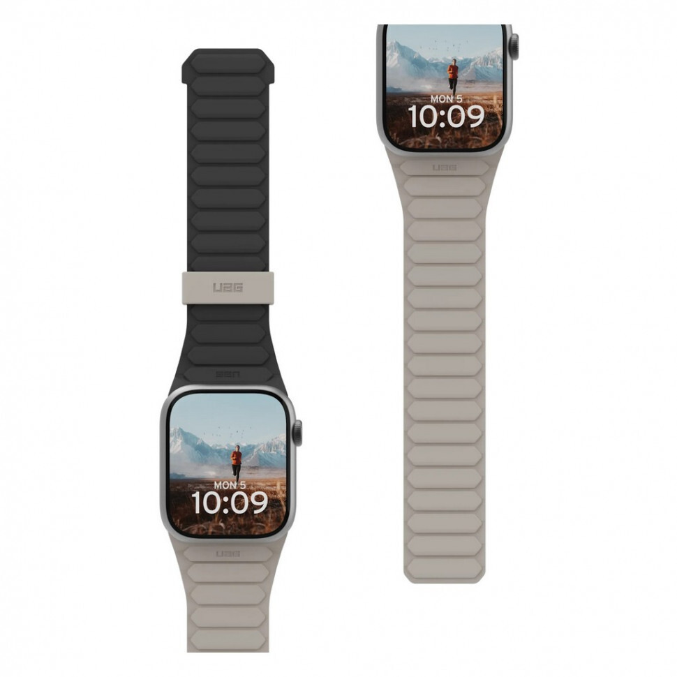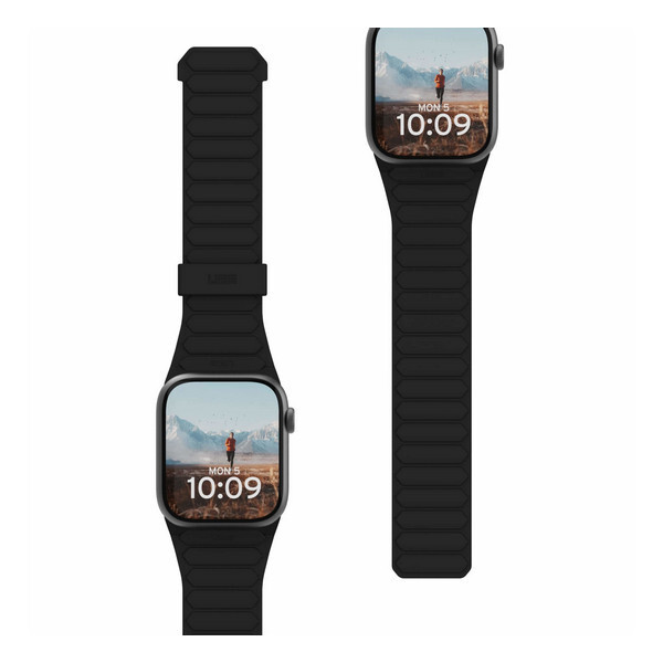Ремешок силиконовый UAG Pathfinder Silicone для Apple Watch 41/40/38 мм черный/титановый (Black/Titanium) (194160114036) обеспечивает исключительный комфорт при ношении Apple Watch в течение всего дня и позволяет использовать три различные цветовые комбинации. Размер браслета: подходит для окружности запястья 130–185 мм.