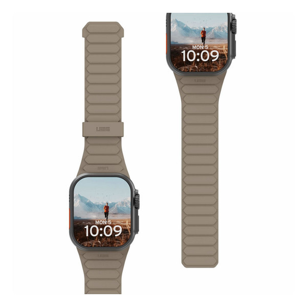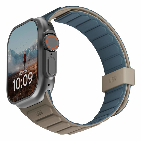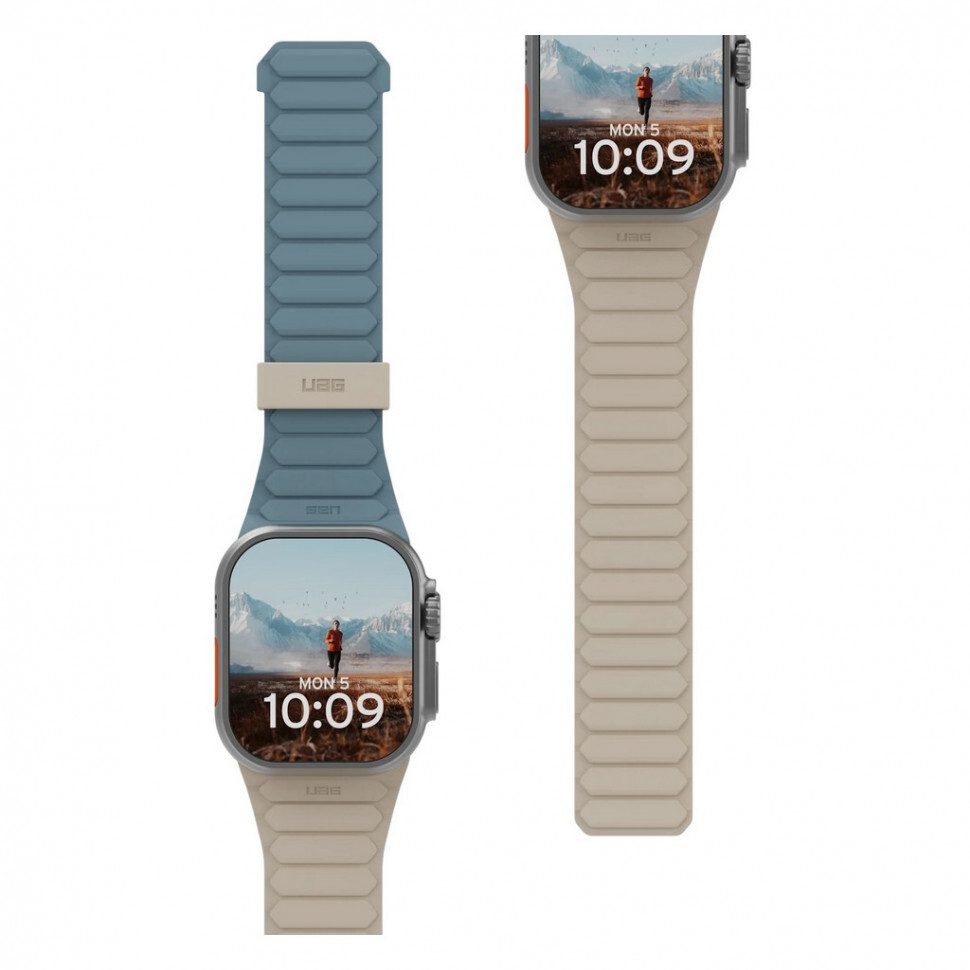 Ремешок силиконовый UAG Pathfinder Silicone для Apple Watch 49/45/44/42 мм песок/голубой (Dune/Cloud Blue) (194161118051) обеспечивает исключительный комфорт при ношении Apple Watch в течение всего дня и позволяет использовать три различные цветовые комбинации. Размер браслета: подходит для окружности запястья 150–200 мм.