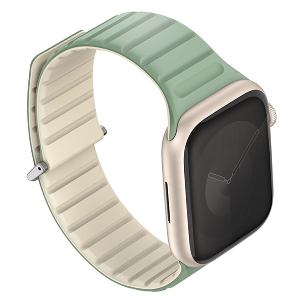 Ремешок силиконовый Uniq REVIX EVO для Apple Watch 41/40/38мм мятный/бежевый (Mint/Beige) 41MM-REVESMNTBEG изготовлен из гипоаллергенного силикона с SoftTouch поверхностью. Премиальные материалы не вызывают раздражения кожи, а промежутки между звеньями пропускают воздух, не давая коже потеть.
