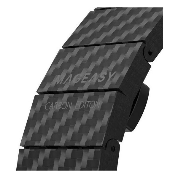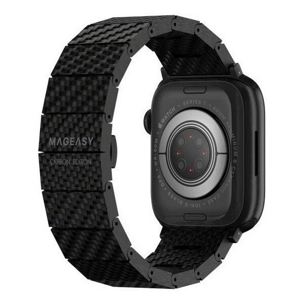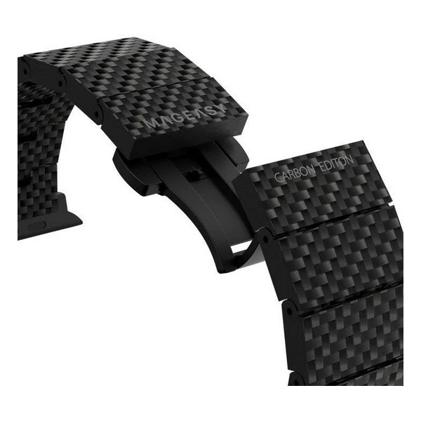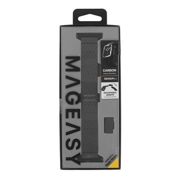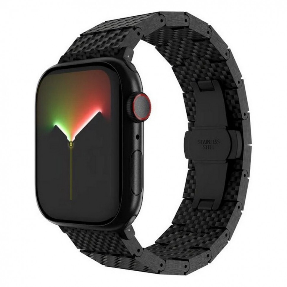 Ремешок SwitchEasy Carbon fiber для Apple Watch 38/40/41mm (MAW801035BK22) черный изготовлен из 100% углеродного волокна. Классическая застежка-бабочка обеспечит надежную фиксацию ваших Apple Watch. Легко регулируемые звенья, добавляйте или удаляйте звенья по размеру вашего запястья с помощью прилагаемого инструмента.