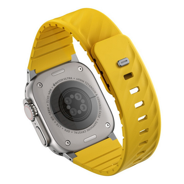 Ремешок Uniq Fluo для Apple Watch 40-49 мм (49-40MM-FLUOGYEL) Golden Yellow освежает повседневный ремешок четкими линиями, скошенным силуэтом и изысканной текстурой, которая легко сочетается с любыми часами. Изготовленный из водостойкого силиконового каучука, он создан для того, чтобы двигаться вместе с вами, обеспечивая комфорт в течение всего дня и надежную посадку благодаря магнитной застежке, конструкции pin-and-tuck и фирменной пряжке из нержавеющей стали. Независимо от того, идете ли вы на работу, в спортзал или на выходные, Fluo сделает ваш ремешок стильным и функциональным. Он даже оснащен двумя универсальными коннекторами, подходящими для большинства часов от 40 до 49 мм.