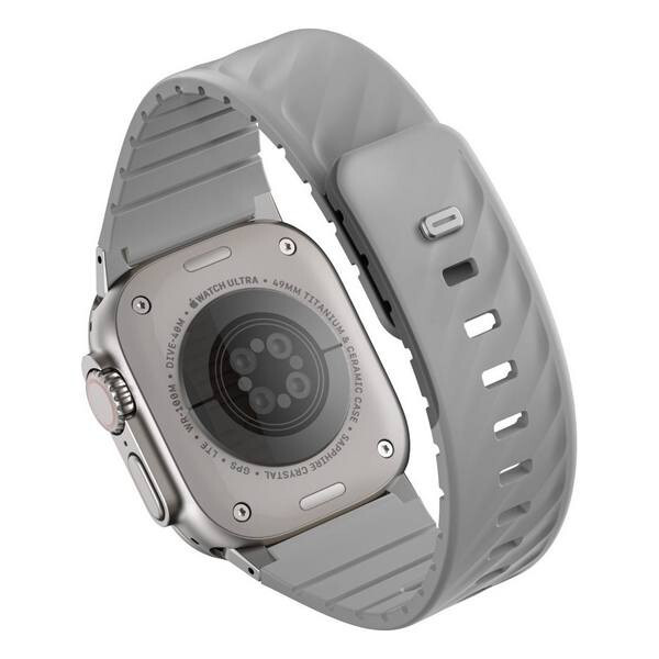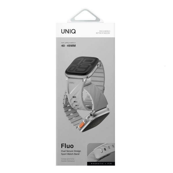 Ремешок Uniq Fluo для Apple Watch 40-49 мм (49-40MM-FLUOMGRY) Mist Grey освежает повседневный ремешок четкими линиями, скошенным силуэтом и изысканной текстурой, которая легко сочетается с любыми часами. Изготовленный из водостойкого силиконового каучука, он создан для того, чтобы двигаться вместе с вами, обеспечивая комфорт в течение всего дня и надежную посадку благодаря магнитной застежке, конструкции pin-and-tuck и фирменной пряжке из нержавеющей стали. Независимо от того, идете ли вы на работу, в спортзал или на выходные, Fluo сделает ваш ремешок стильным и функциональным. Он даже оснащен двумя универсальными коннекторами, подходящими для большинства часов от 40 до 49 мм.