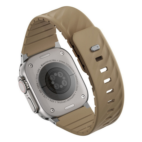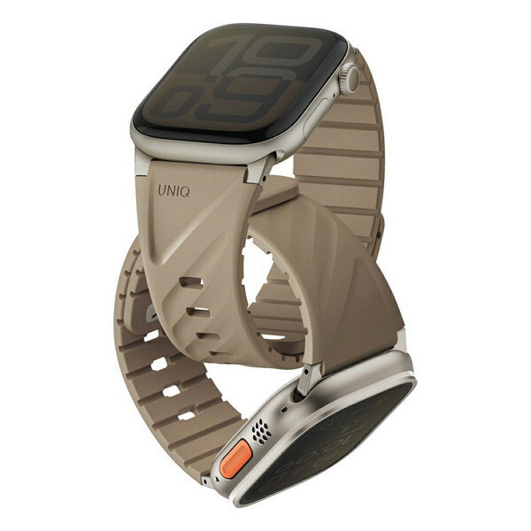 Ремешок Uniq Fluo для Apple Watch 40-49 мм (49-40MM-FLUOSSAN) Soft Sand освежает повседневный ремешок четкими линиями, скошенным силуэтом и изысканной текстурой, которая легко сочетается с любыми часами. Изготовленный из водостойкого силиконового каучука, он создан для того, чтобы двигаться вместе с вами, обеспечивая комфорт в течение всего дня и надежную посадку благодаря магнитной застежке, конструкции pin-and-tuck и фирменной пряжке из нержавеющей стали. Независимо от того, идете ли вы на работу, в спортзал или на выходные, Fluo сделает ваш ремешок стильным и функциональным. Он даже оснащен двумя универсальными коннекторами, подходящими для большинства часов от 40 до 49 мм.