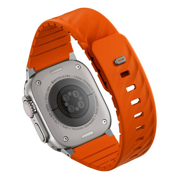 Ремешок Uniq Fluo для Apple Watch 40-49 мм (49-40MM-FLUOMGRY) Volt Orange освежает повседневный ремешок четкими линиями, скошенным силуэтом и изысканной текстурой, которая легко сочетается с любыми часами. Изготовленный из водостойкого силиконового каучука, он создан для того, чтобы двигаться вместе с вами, обеспечивая комфорт в течение всего дня и надежную посадку благодаря магнитной застежке, конструкции pin-and-tuck и фирменной пряжке из нержавеющей стали. Независимо от того, идете ли вы на работу, в спортзал или на выходные, Fluo сделает ваш ремешок стильным и функциональным. Он даже оснащен двумя универсальными коннекторами, подходящими для большинства часов от 40 до 49 мм.
