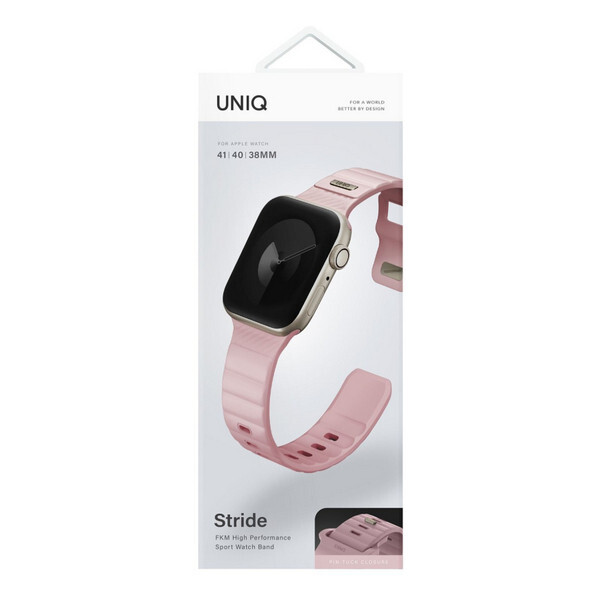 Ремешок Uniq Stride FKM Rubber для Apple Watch 38/41/40 мм Pale Pink (41MM-STRIPPNK) - прочная конструкция Stride сохраняет свою целостность и внешний вид даже в самых тяжелых условиях эксплуатации. Обладая исключительной устойчивостью к экстремальным температурам, Stride надежно работает в любом климате.
