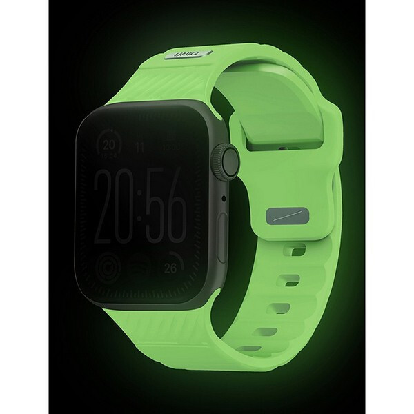 Ремешок Uniq Stride SE FKM Rubber для Apple Watch 49/46/45/44 мм Lume (49MM-STRSELUME) светится в темноте, поэтому ваш браслет останется заметным даже при слабом освещении. Мягкий аксессуар из фторэластомерного каучука обладает высокой прочностью, комфортно сидит и прекрасно смотрится на руке. Cтильный водонепроницаемый ремешок гарантирует надежность даже при самых интенсивных занятиях спортом. Фиксируется на руке с помощью удобной pастежки-булавки, обеспечивает надежную посадку, при этом конец ремешка аккуратно спрятан, чтобы не зацепиться.