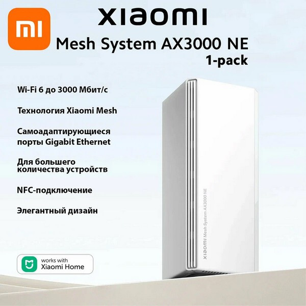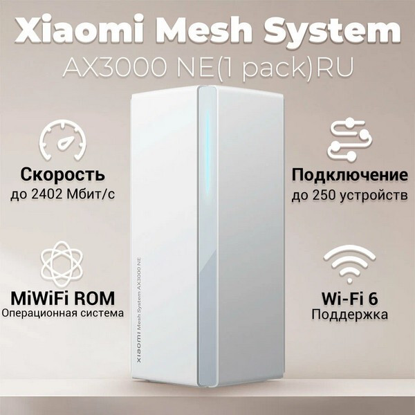 Роутер Xiaomi Mesh System AX3000 NE (1 pack) RU (DVB4465GL) Белый - это современное решение для создания высокоскоростной и стабильной беспроводной сети в вашем доме или офисе. Он обеспечивает скорость передачи данных до 2976 Мбит/с (максимальная скорость в диапазоне 2.4 ГГц — 574 Мбит/с, в диапазоне 5 ГГц — 2402 Мбит/с). С этим устройством вы сможете одновременно смотреть онлайн-видео в формате 8K и скачивать из сети большой объём данных, а ваши домочадцы — играть в онлайн-игры и просматривать ленты социальных сетей без каких-либо задержек. Одно такое устройство создаёт стабильную беспроводную сеть на площади до 186 кв. м.