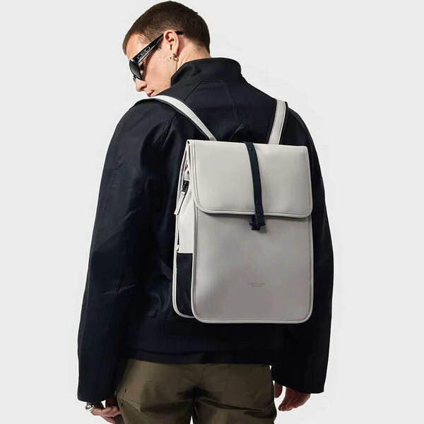 Модель изготовлена из переработанного полиэстера с покрытием из ТПУ, водонепроницаемого материала и фурнитуры с ремнями из переработанного тканого полиэстера. Рюкзак не только функционален, но и экологически безопасен