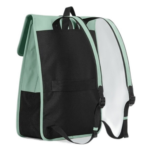 Модель изготовлена из переработанного полиэстера с покрытием из ТПУ, водонепроницаемого материала и фурнитуры с ремнями из переработанного тканого полиэстера. Рюкзак не только функционален, но и экологически безопасен