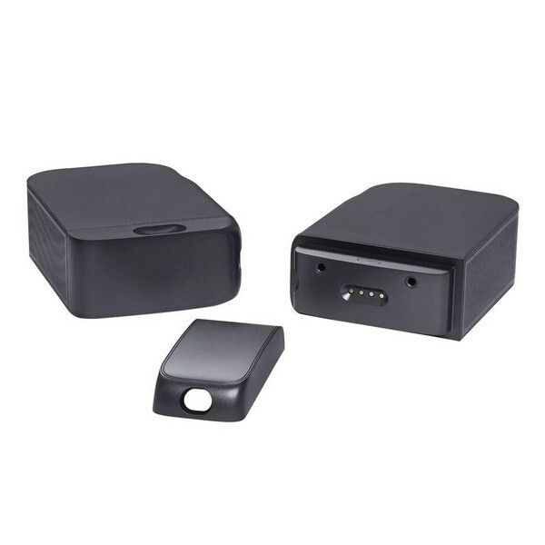 Наслаждайтесь настоящим объемным звуком без лишних проводов и подключений питания. Просто поместите два съемных аккумуляторных динамика объемного звучания позади себя и погрузитесь в потрясающий звук.