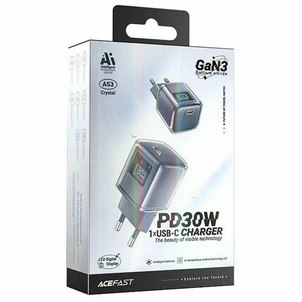 Сетевое зарядное устройство AceFast A53 PD30W GaN USB-C (AF-A53-MG) Metallic Gray - это устройство, которое подходит для быстрой зарядки таких устройств, как телефоны, планшеты, игровые приставки, ноутбуки. Оно имеет порт USB Type-C, который позволяет заряжать гаджеты с мощностью до 30 Вт. Сетевое зарядное устройство Acefast A53 позволяет быстро заряжать самые разнообразные устройства, поскольку поддерживает протоколы быстрой зарядки Power Delivery и Quick Charge (PD3.0 / PD2.0 / QC4+ / QC3.0 / QC2.0).