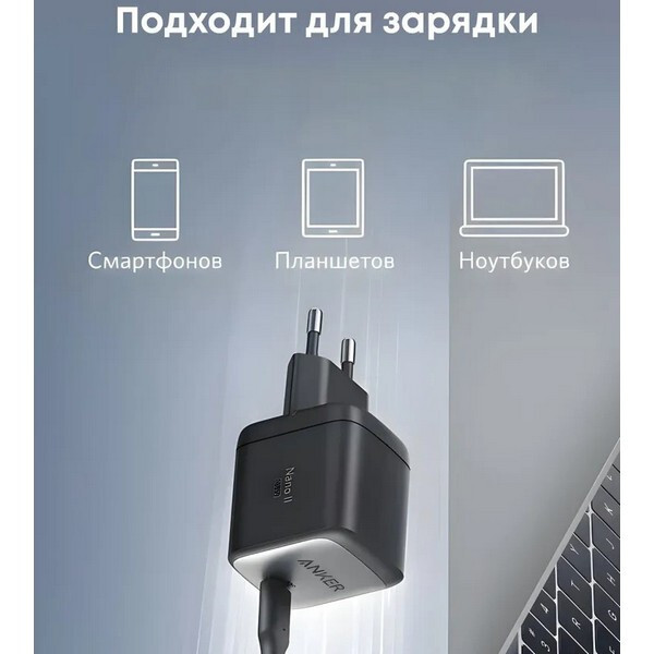 Сетевое зарядное устройство Anker PowerPort Nano II 65W GaN USB-C (A2663G11) Black - это зарядное устройство, которое обладает высокой мощностью в 65 Вт, необходимой для быстрой зарядки телефона, планшета и ноутбука.