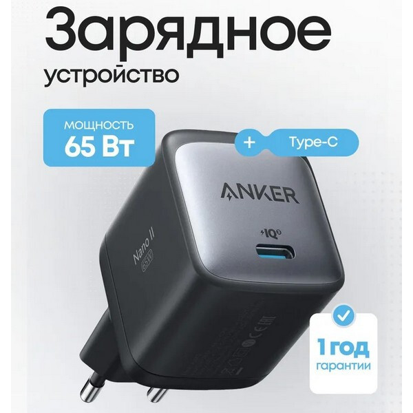 Сетевое зарядное устройство Anker PowerPort Nano II 65W GaN USB-C (A2663G11) Black - это зарядное устройство, которое обладает высокой мощностью в 65 Вт, необходимой для быстрой зарядки телефона, планшета и ноутбука.