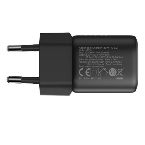 Сетевое зарядное устройство Anker Zolo Wall Charger 30W (A2698L11) Black обеспечивает мощность до 30 Вт, гарантируя быструю зарядку ваших устройств.
