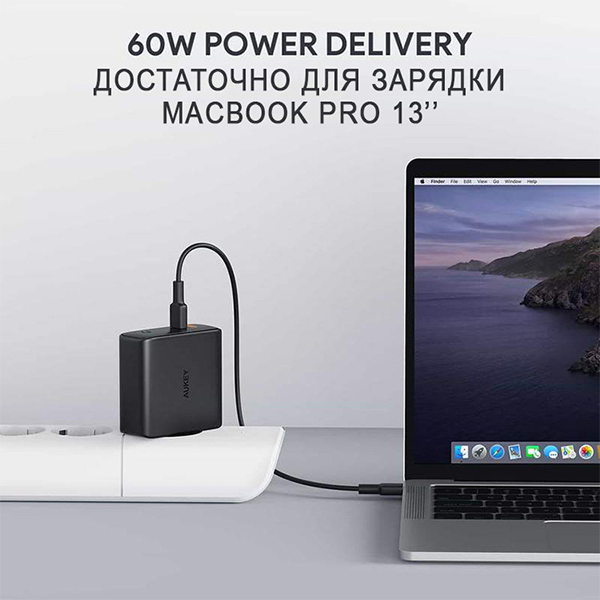 Компактное сетевое зарядное устройство Aukey PA-D5 позволяет одновременно заряжать 2 устройства, например айфон и макбук про. Зарядка оснащена двумя разъёмами USB TypeС Power Delivery - это дает возможность заряжать гаджеты с высокой скоростью. Второй USB-C порт при самостоятельном использовании обеспечивает полную мощность зарядного устройства - 60 Вт, при использовании первого порта (мощностью 18 Вт) - 45 Вт. Использование транзисторов нового поколения из нитрида галлия (технология GaN) позволяет делать микросхемы более компактными и надежными. С помощью технологии динамического обнаружения Dynamic Detect адаптер самостоятельно определит тип подключенного устройства и автоматически распределит мощность. Многоступенчатая система безопасности защитит от короткого замыкания, перегрева и скачков напряжения.