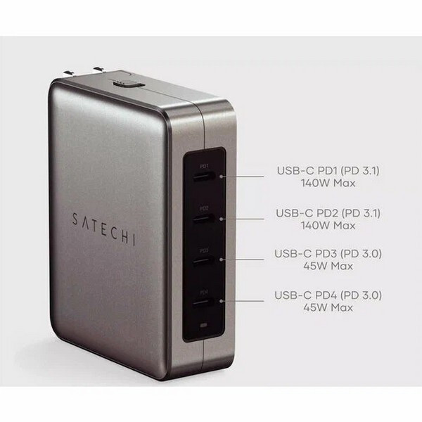 Сетевое зарядное устройство Satechi USB-C 4-Port GAN 145W (ST-W145GTM) Серый космос – купить за 12 600 ₽ | Мир гаджетов