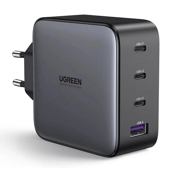 Сетевое зарядное устройство Ugreen CD226 USB-A + 3 x USB-C 100W GaN (90575) серый космос с кабелем Type-C представляет собой многофункциональное устройство, которое обеспечивает быструю и безопасную зарядку различных гаджетов. Устройство оснащено двумя разъемами USB-A и тремя разъемами USB-C, что позволяет одновременно заряжать до четырех устройств. Максимальная выходная мощность составляет 100 Вт, что обеспечивает быструю зарядку даже самых мощных гаджетов.