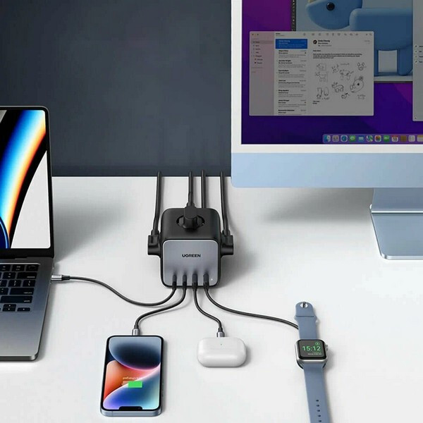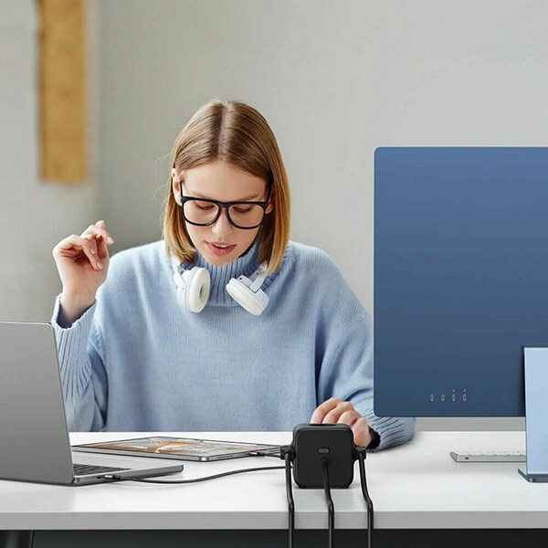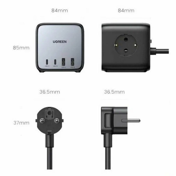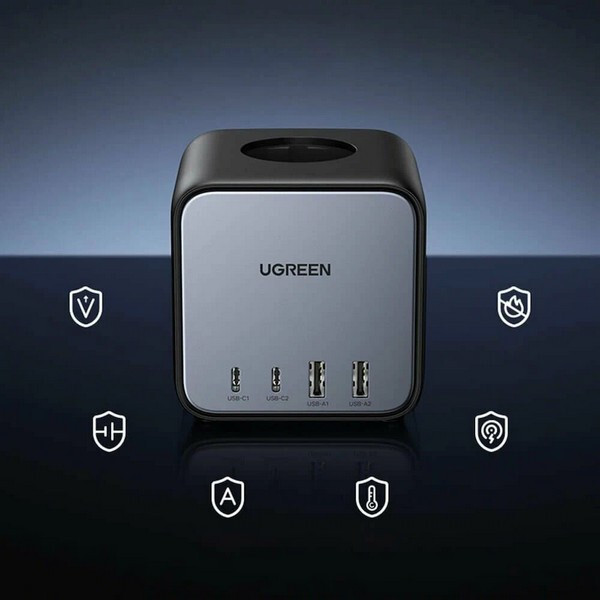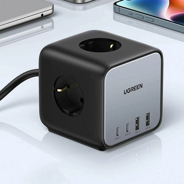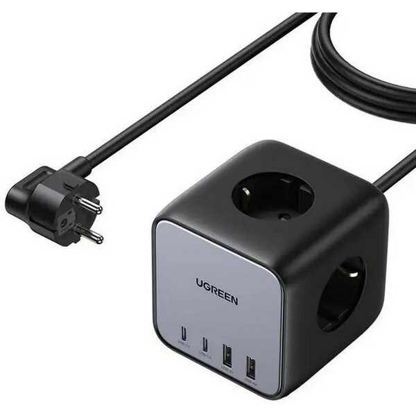 Сетевое зарядное устройство Ugreen CD268 DigiNest Cube 65W 2*USB-C/2*USB-A (60113) серый космос - это многофункциональная удлинительная розетка, которая позволяет подключать до 6 устройств одновременно. Розетка оснащена 3 розетками AC, 2 Type-C портами и 2 USB-A портами.
