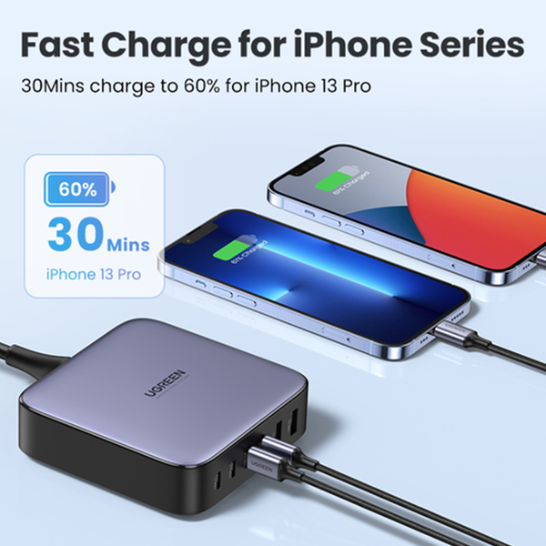 Высокоскоростные порты зарядки - полная зарядка 16-ти дюймового макбука займет 1,5 часов. Хаб Ugreen CD271 содержит GaN чипсет, что позволяет заряжать устройства в 3 раза быстрее, чем в обычных зарядках
