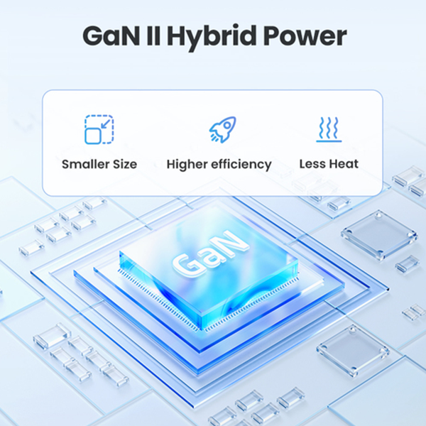 Зарядка предотвращает нагревание благодаря чипсету GaN, каждые полсекунды анализируется температура хаба и регулируется мощность.